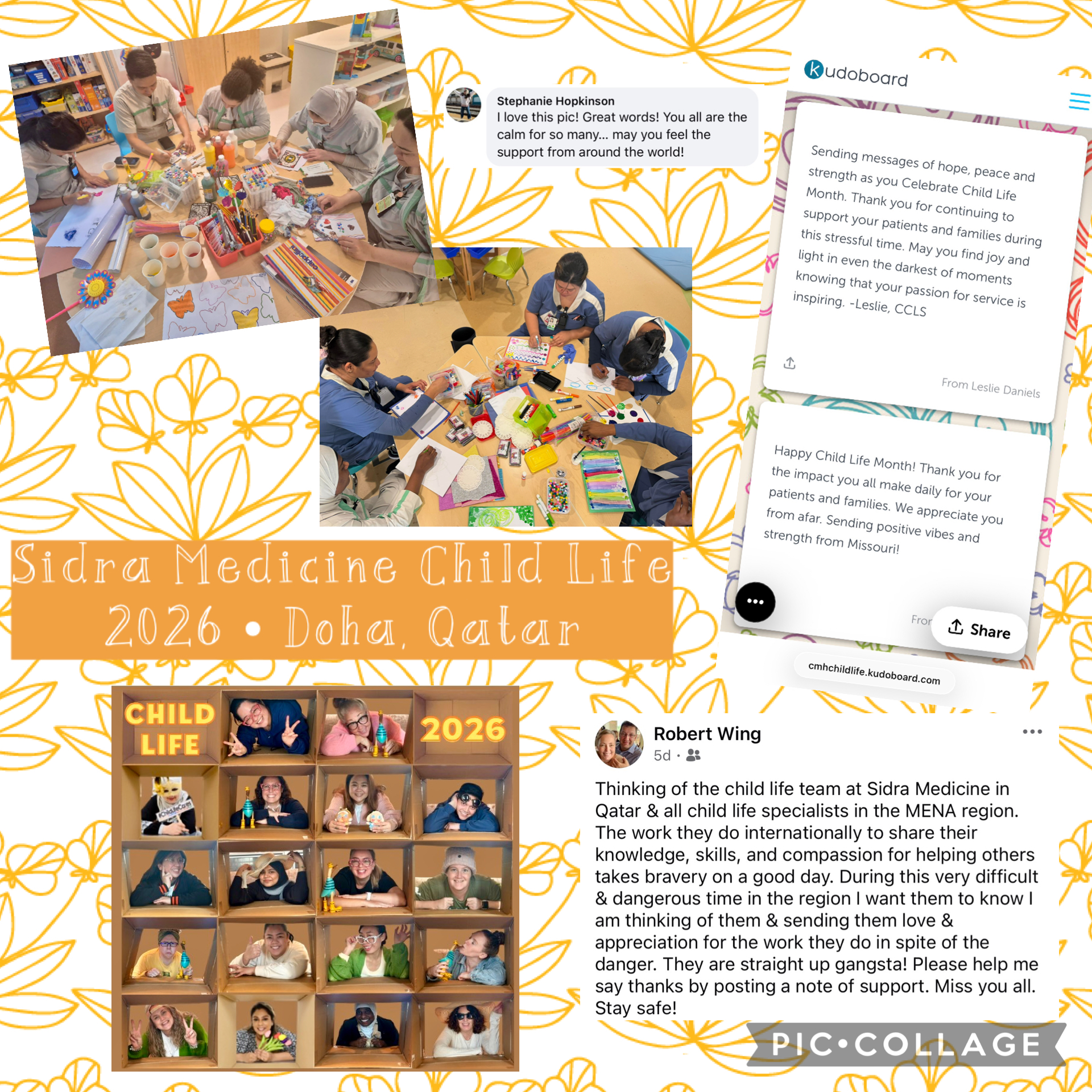 “Child Life Month looks different in the Middle East and North Africa region this year. While we hope to celebrate soon, our team’s focus has been on supporting patients, families, and staff as they navigate the current regional conflict during the holy month of Ramadan. Our playrooms remain open as spaces for normalization and processing, and we hosted staff-focused expressive arts sessions to offer colleagues time for decompression and grounding. The Child Life Disaster Relief brochure on talking with children during war and conflict was shared in our internal hospital newsletter to help staff feel more prepared when supporting children both at work and at home. We are also grateful for colleagues abroad who reached out with messages of support, including teams from Logan Regional, Children’s Mercy, and Yale New Haven. Their kindness brought smiles and reminded us how thankful we are to be part of the broader child life community.”