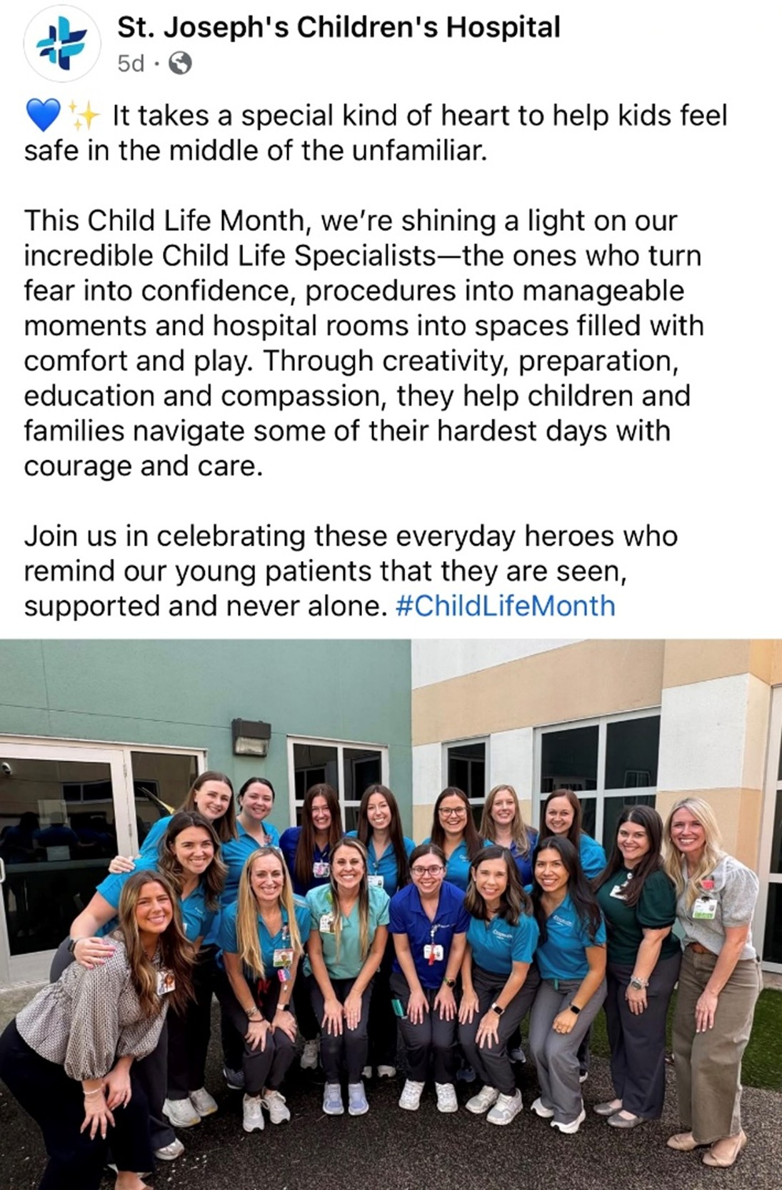 “Mayo Clinic Children’s Child Life Team celebrates Child Life Month by coming together to host a professional development day for our team. This dedicated time allows us to learn, grow, and strengthen our practice as we continue supporting children and families with excellence and compassion.”