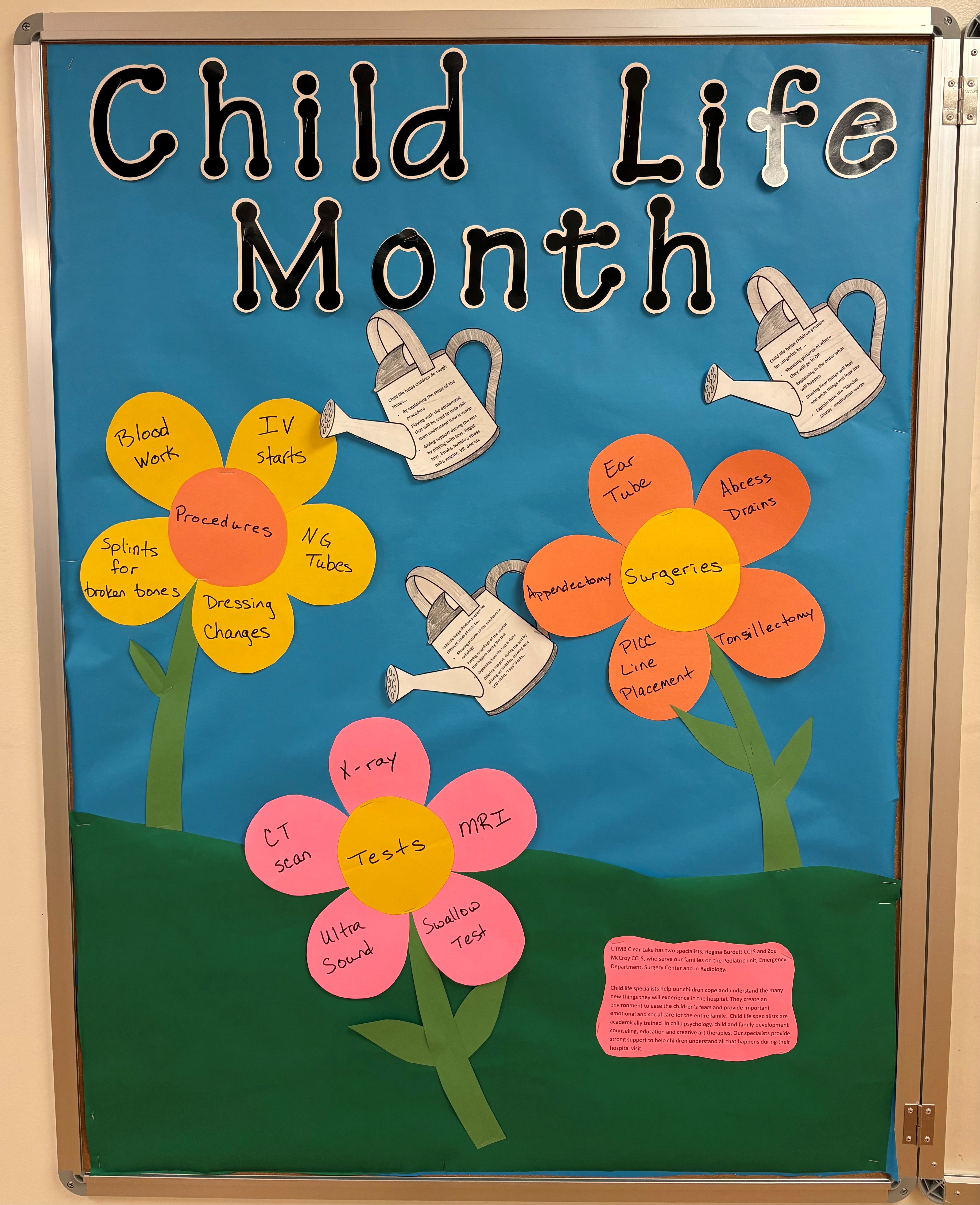 “My colleague Hilary and I designed and created a display for our hospital to celebrate and raise awareness about the role of child life specialists and the impact of child life services, with the focus on pain management and coping.”