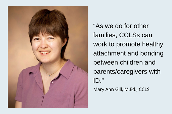 A few times in my clinical practice, I have worked with children whose parents or caregivers have either a known or suspected diagnosis of intellectual disability (ID). While the skills of a Certified Child Life Specialist (CCLS) can easily translate to support for these families, some child life professionals may not feel adequately prepared to assess and address the psychosocial needs of parents/caregivers with ID. Personally, I entered the child life field with prior experience supporting adults with ID in an inclusive college program, but my knowledge of parents/caregivers with ID was still very limited. Through ongoing experience in the healthcare setting and staying up to date with relevant research, I have continued building my knowledge and skillset for working with this population. I am writing this article with the goals of educating fellow child life professionals and students about the strengths, needs, and experiences of parents/caregivers with ID and offering specific strategies for supporting these families.